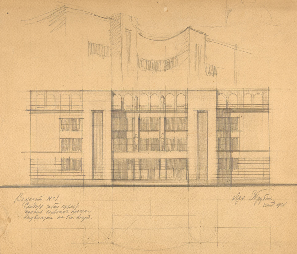 Трубников Е. Лот из двух архитектурных проектов. 1934 г. Бумага, карандаш, 24×33; 25,5×28,7 см.