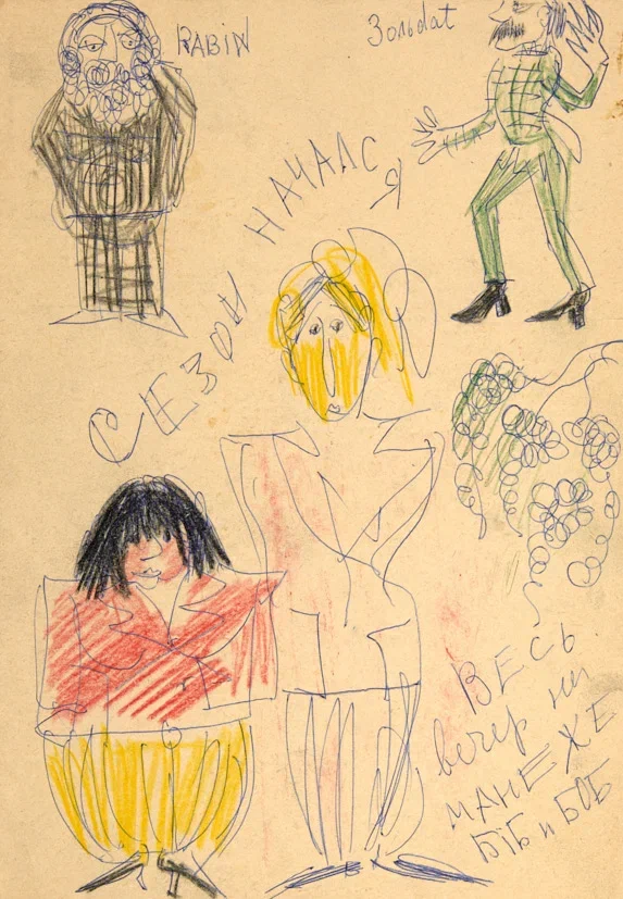 Сезон начался. Из серии рисунков, созданных С. Параджановым для Танино Гуэрры. 1980-е гг. Бумага, цветной карандаш, 29,5×21 см.