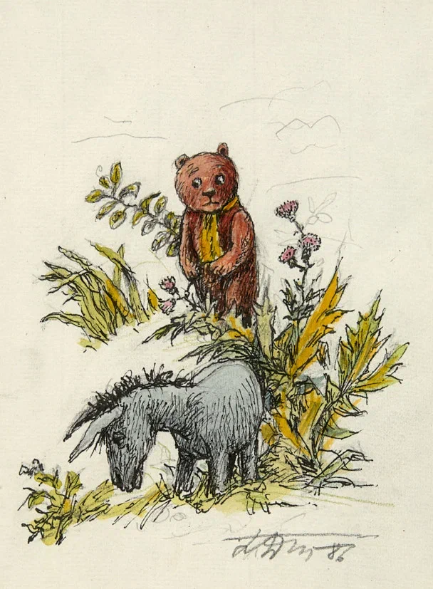 Винни-Пух и ослик Иа. 1986 г. Бумага, тушь, перо, акварель 17×12,5 см. (в свету).
