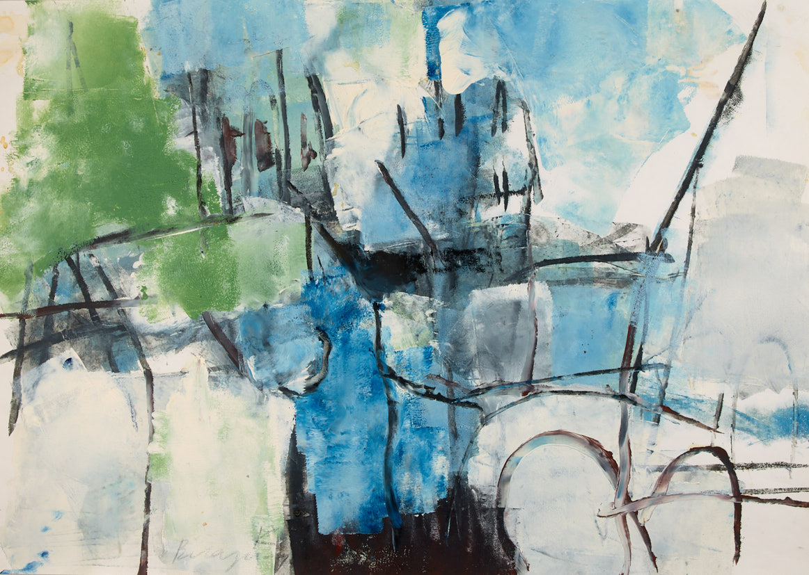 Мальта. Голубое и зеленое. 2009 г. Бумага, тушь, акрил, белила, 35,5×50 см.