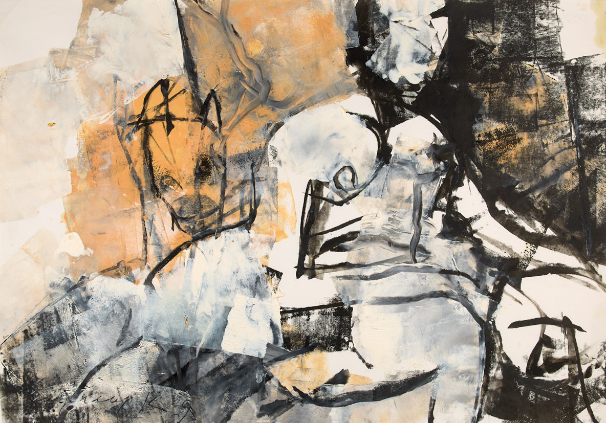 Ню с собакой. Терракотовое и черное. 2009 г. Бумага, тушь, акрил, белила, 35,5×50 см.