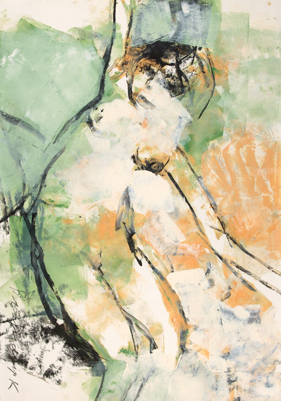 Курдюков Владимир Дмитриевич (1955–2018). Композиция с ню. Зеленое и терракотовое. 2009 г. Бумага, тушь, акрил, белила, 35,5×50 см.