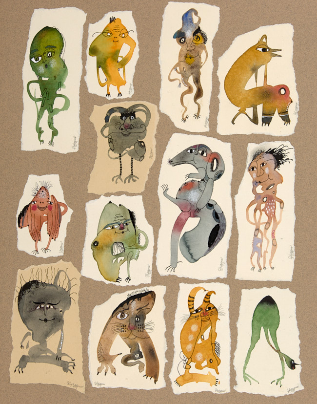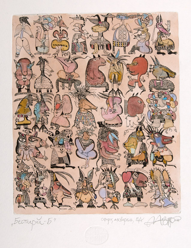 Бестиарий. 49 акварельных иллюстраций + офорт, раскрашенный акварелью. 2022. 32,5×26 см.