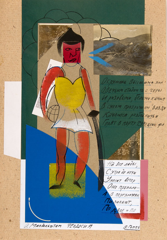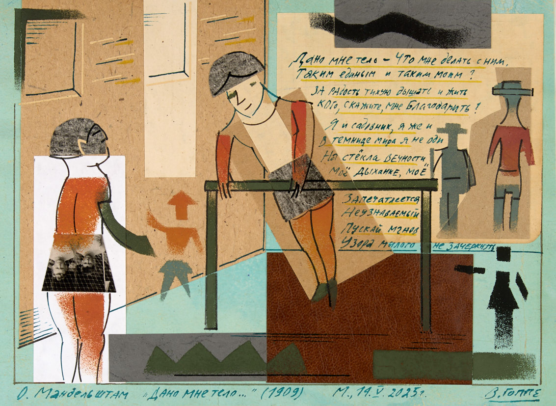 Лот из 8 иллюстраций к стихотворениям О. Мандельштама. 2025 г. Бумага, коллаж, тушь, фотомонтаж, 21×23,5; 21×25; 17,5×24; 19×25 см.