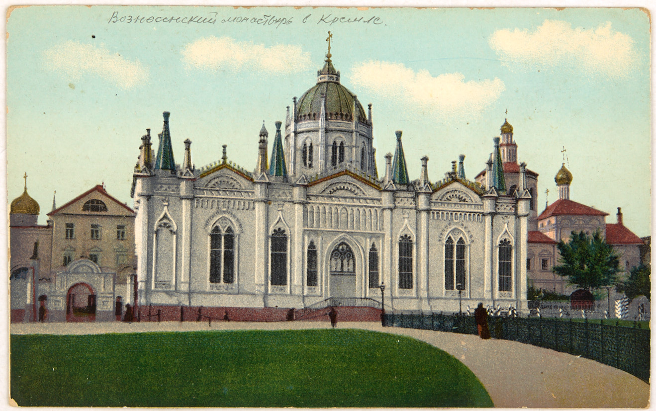 Лот из двух цветных видов Москвы: Вознесенский монастырь в Кремле, Царь-Пушка. Начало XX в. Всемирный почтовый союз. Издание Дубровиц. Москва. 14×9; 9×14 см.