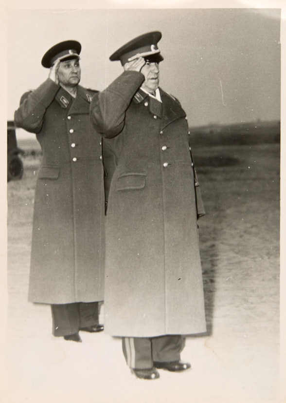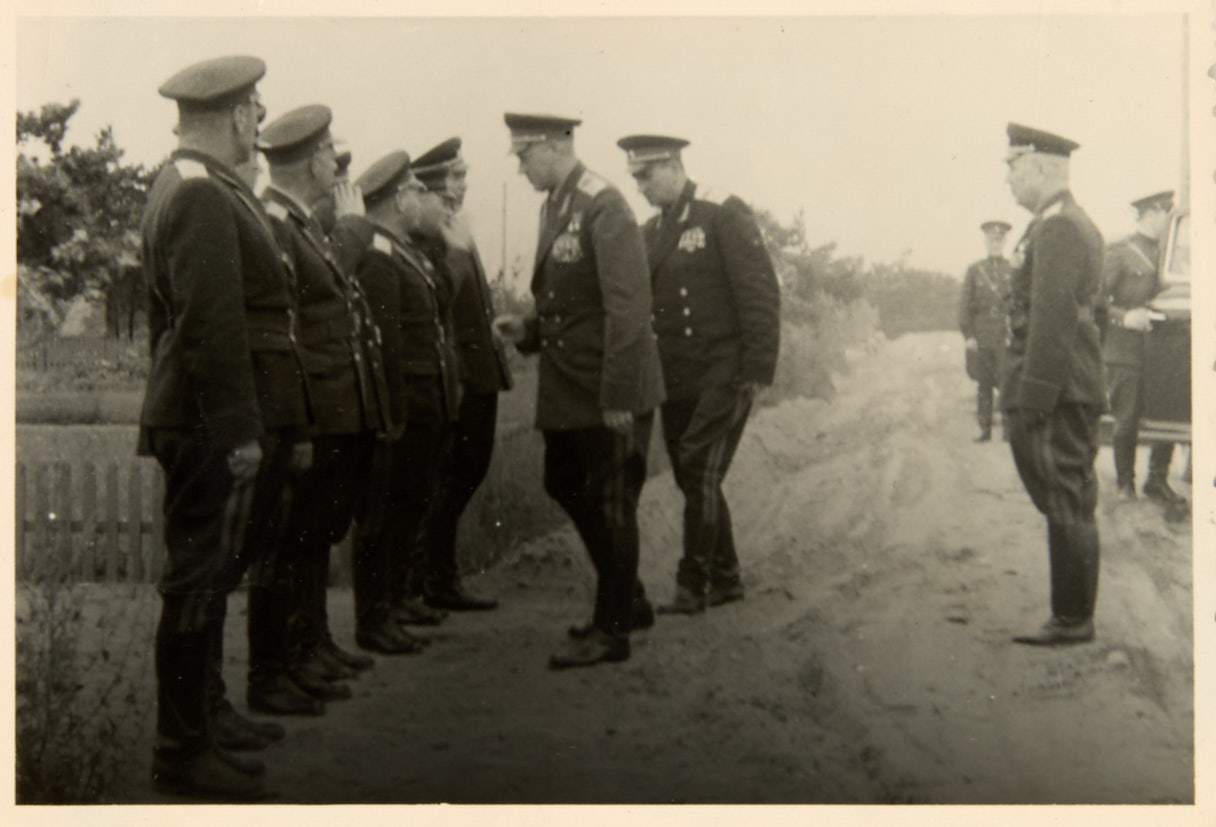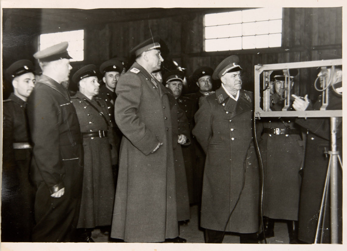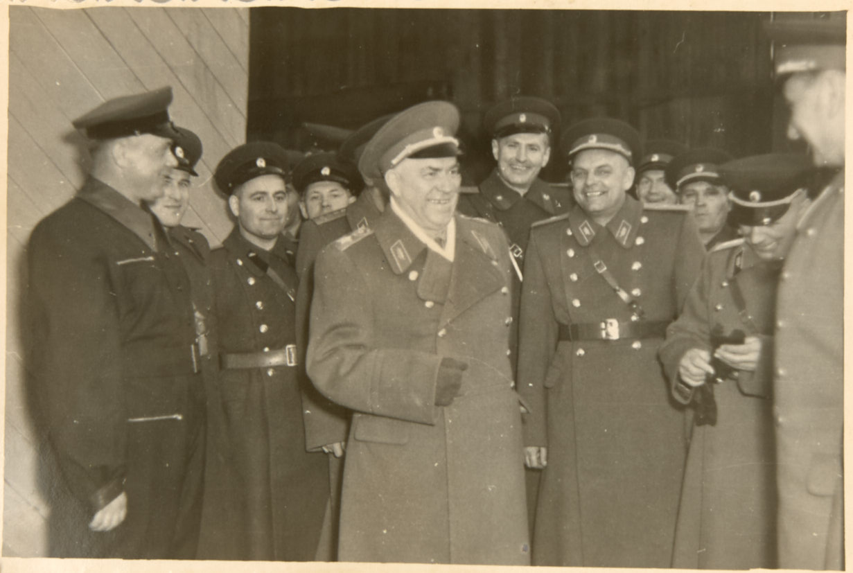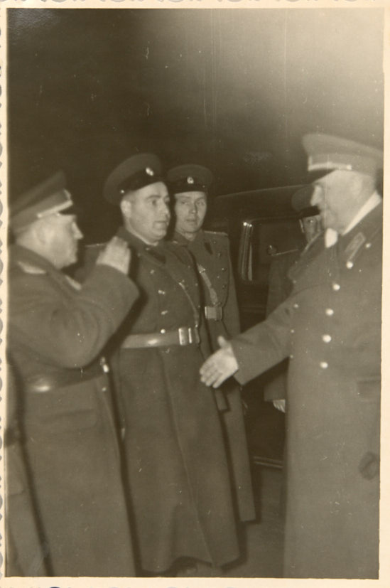 Лот из 5 фотографий: Маршалы Советского Союза Г. К. Жуков, К. К. Рокоссовский, А. А. Гречко с инспекцией в группе Советских войск в Германии. 1950-е гг. Фотографии, 18×12,7; 12,8×17,3; 8,8×12,5; 14×9,7; 9,5×14 см.