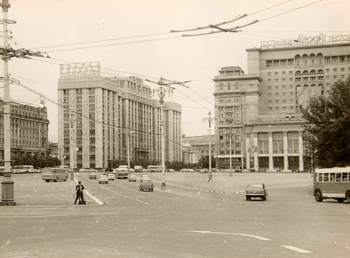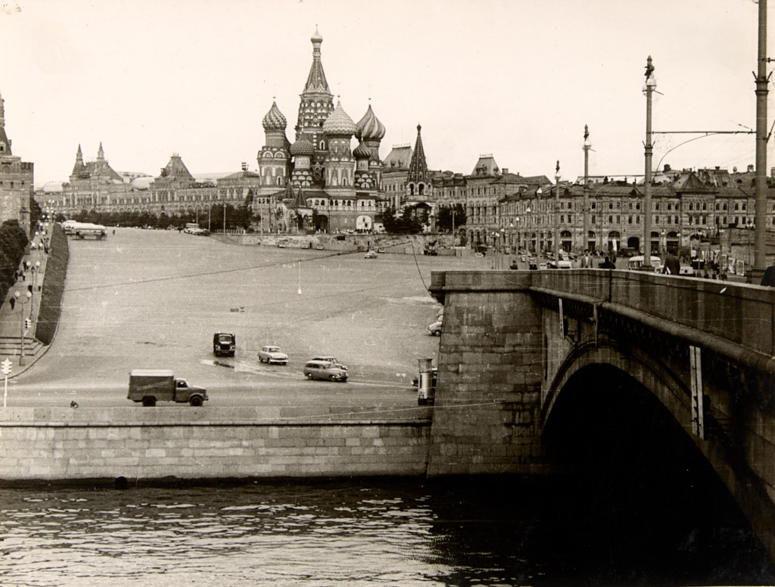 Лот из 5 фотографий Москвы. МИД, Высотное здание на Котельнической набережной, гостиница Москва, Дом Союзов; Набережная, Храм Покрова.1960 г. Фотография, 16×22; 14×22 см.