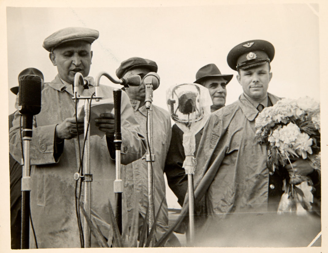 Тодор Живков встречает Ю. А. Гагарина. Май 1961 г. Фотография, 9×13 см.