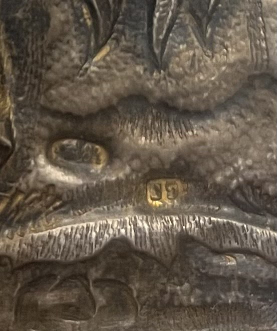 Оклад: белый металл, чеканка, гравировка, золочение. Клеймо Московской пробирной палаты, 1897-1907. Клеймо мастера ВГ. Оборот иконы обит бархатом. Утрата венцов. В историческом киоте (32×27 см.)