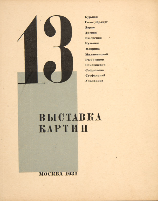 «13». Выставка картин / Бурлюк, Кузьмин, Маврина, Даран, Древин, Милашевский и др. М., 1931. [4] с., ил.