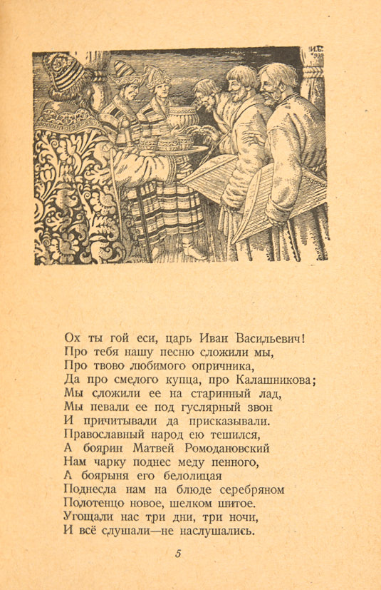 Песня про царя Ивана Васильевича, молодого опричника и удалого купца Калашникова. / Рис. И. Билибина. М.: Огиз, 1941. 22, [2] с.: ил.