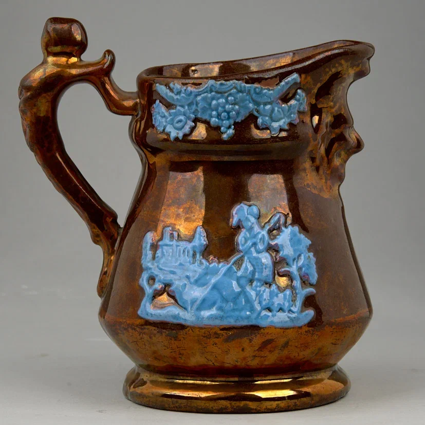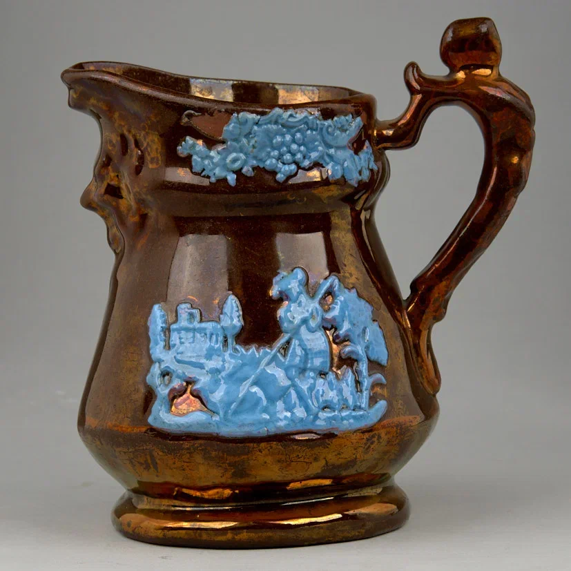 Молочник с пасторалью и маскароном. Начало XX в. Фаянс, лепка, формовка, подкраска, 13,5×14×8 см.