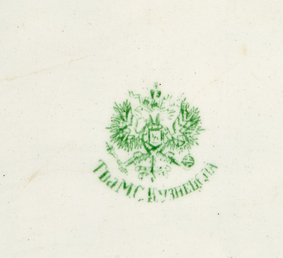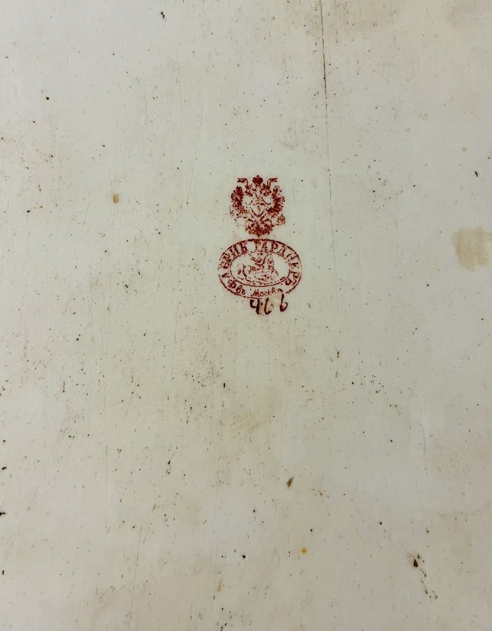 Потертости. Следы бытования. На обороте клеймо завода Гарднер красным пигментом.