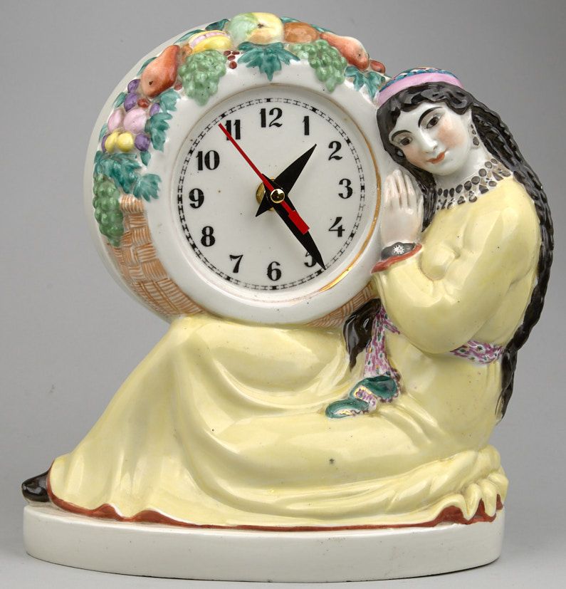 Узбечка. Часы (механизм электронный). Ленинградский Фарфоровый завод. 1940-е гг. Автор модели Данько Наталья Яковлевна (1892–1942). Фарфор, роспись, 24×21×11 см.