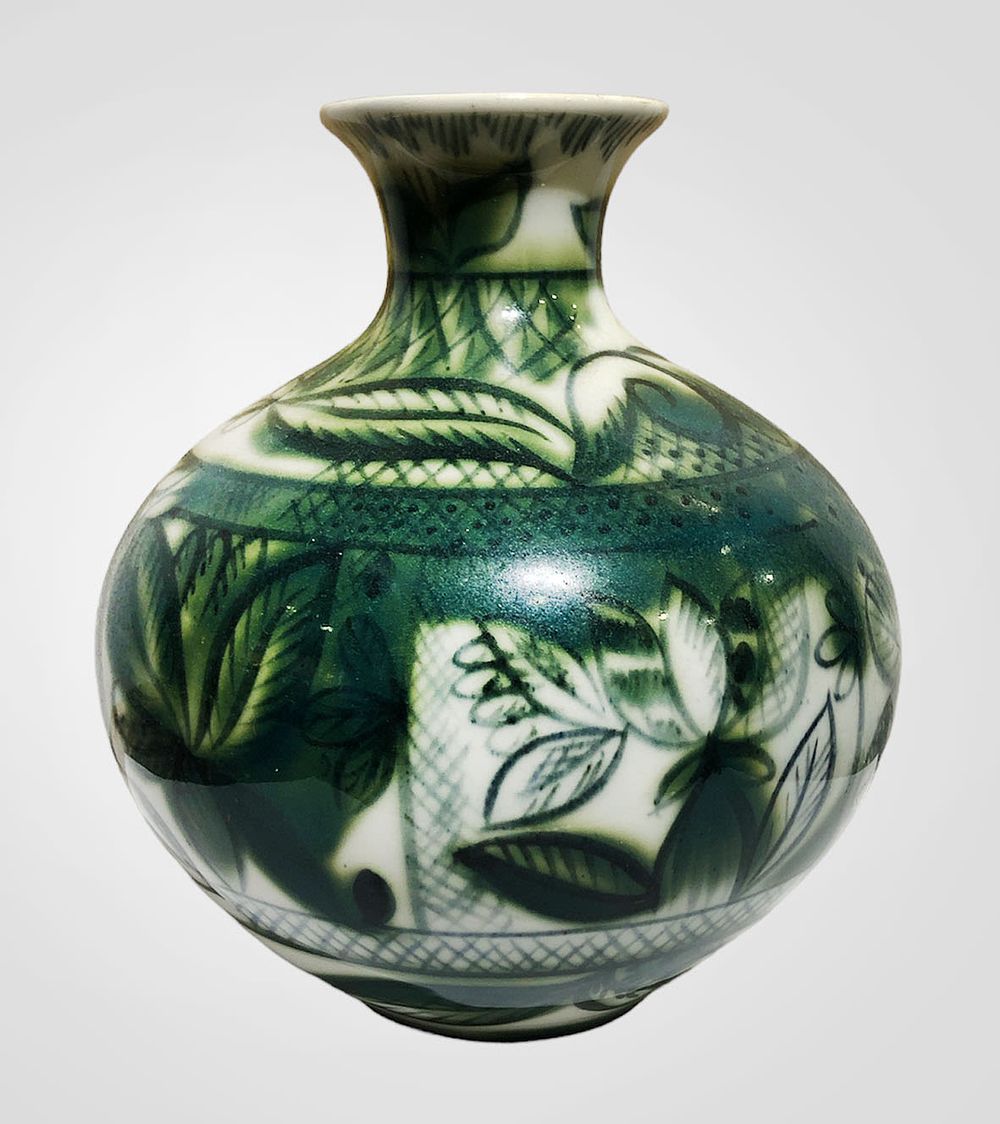 Ваза настольная. Ленинградский фарфоровый завод (ЛФЗ), 1960–е гг. Фарфор, подглазурная роспись, высота 17,5 см.