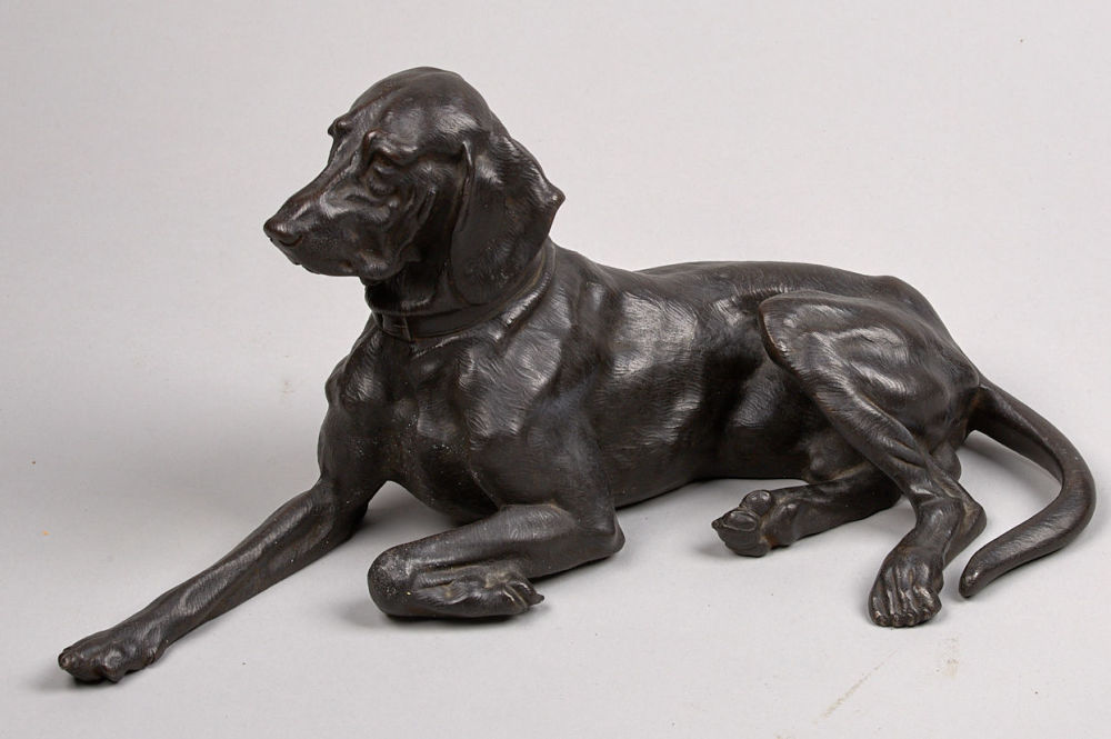 Пойнтер. По модели Либериха Николая Ивановича (1828-1883 г.) Каслинский завод чугунного литья, 1965 г. Чугун, литье, чеканка. 37×7×18 см.