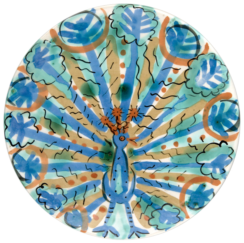 Кравченко И. С. Декоративная тарелка «Павлин». 1967 г. Фаянс, роспись, 25,5 см.
