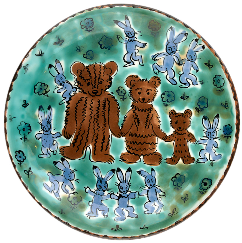Кравченко И. С. Декоративная тарелка «Медведи и зайчики». 1967 г. Фаянс, роспись, 35 см.