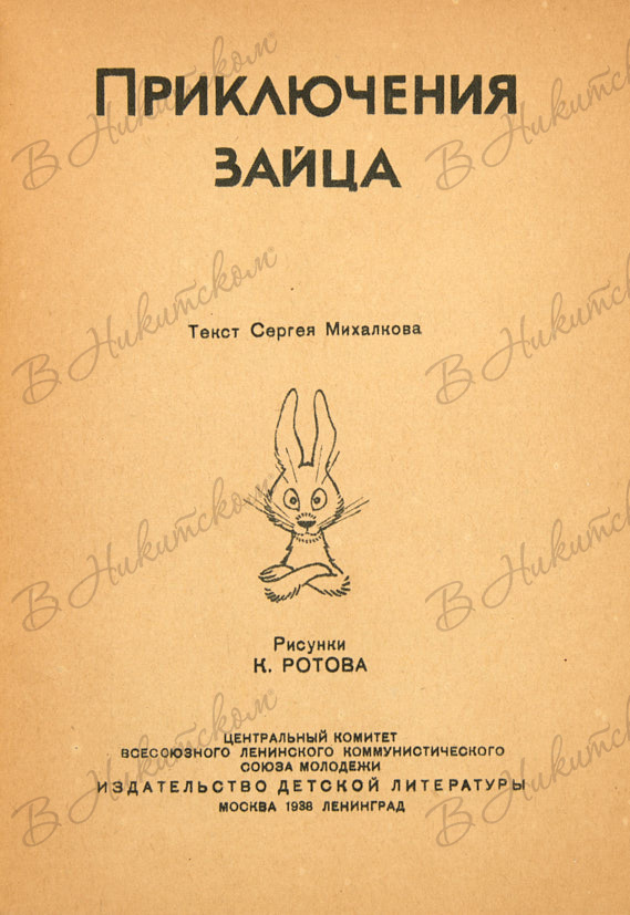 [Серия «Маленькая библиотека»]. Михалков, С. Приключения зайца / рис. К. Ротова. М.; Л.: ДЕТИЗДАТ, 1938.