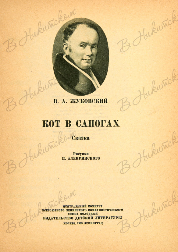 [Серия «Книга за книгой»]. Жуковский, В.А. Кот в сапогах / рис. П. Алякринского. М.; Л.: ДЕТИЗДАТ, 1939.