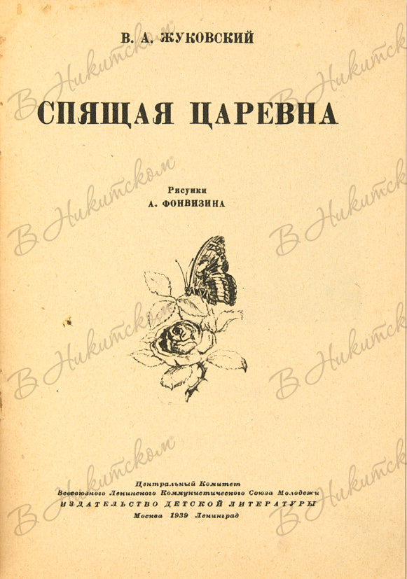 [Серия «Маленькая библиотека»]. Жуковский, В.А. Спящая царевна / рис. А. Фонвизина. М.; Л.: ДЕТИЗДАТ, 1939.