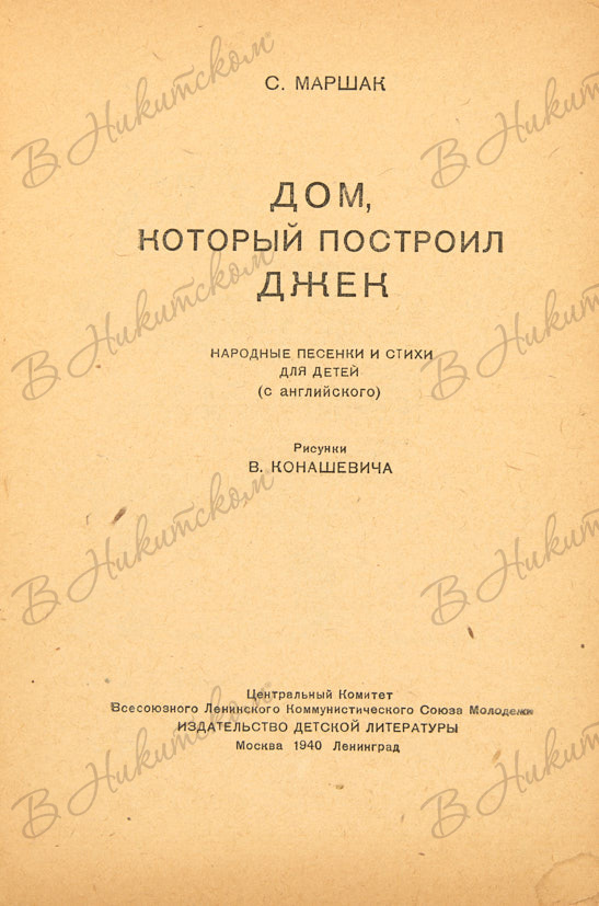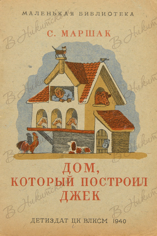 [Серия «Маленькая библиотека»]. Маршак, С. Дом, который построил Джек. Народные песенки и стихи для детей (с английского) / рис. В. Конашевича. М.; Л.: ДЕТИЗДАТ, 1940.