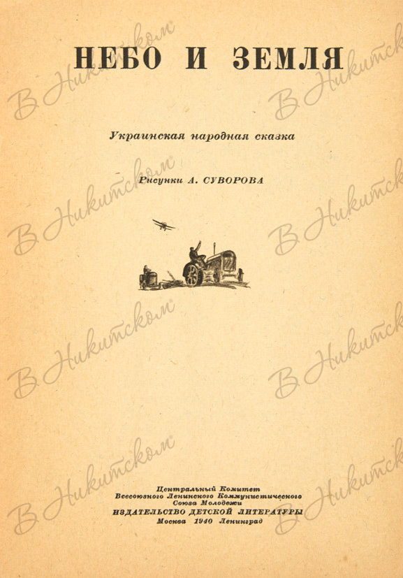 [Серия «Маленькая библиотека»]. Небо и земля. Украинская народная сказка / рис. А. Суворова. М.; Л.: ДЕТИЗДАТ, 1940.