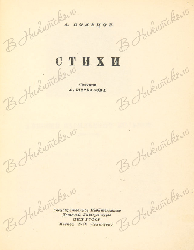 [Серия «Первая библиотечка школьника»]. Кольцов, А.В. Стихи / рис. А. Щербакова. М.; Л.: ДЕТГИЗ, 1942.