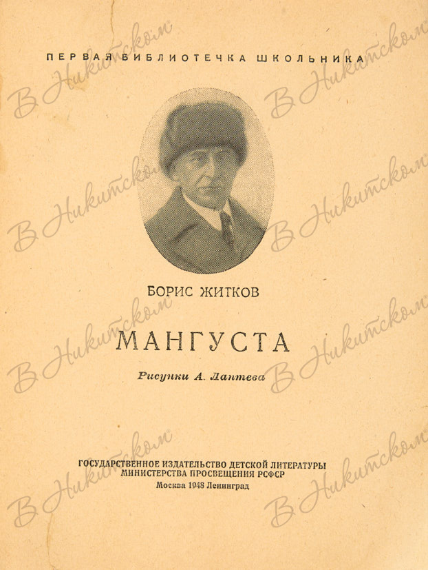 [Серия «Первая библиотечка школьника»]. Житков, Б. Мангуста / рис. А. Лаптева. М.: ДЕТГИЗ, 1948.