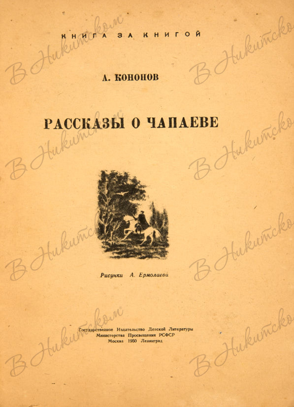 [Серия «Книга за книгой»]. Кононов, А. Рассказы о Чапаеве / рис. А. Ермолаева. М.; Л.: ДЕТГИЗ, 1950.