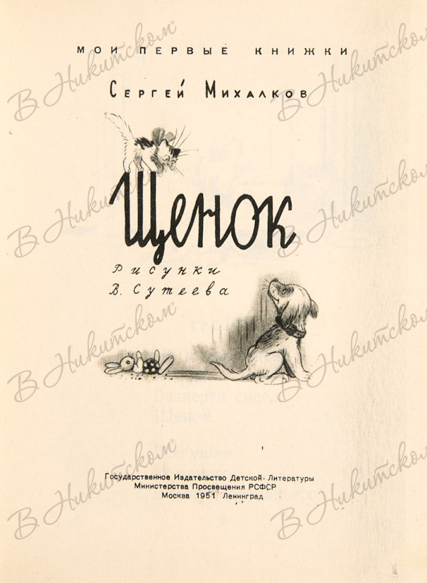 [Серия «Мои первые книжки»]. Михалков, С. Щенок / рис. В. Сутеева. М.; Л.: ДЕТГИЗ, 1951.