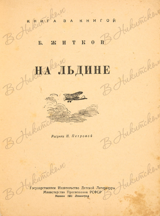 [Серия «Книга за книгой»]. Житков, Б. На льдине / рис. Н. Петровой. М.; Л.: ДЕТГИЗ, 1951.