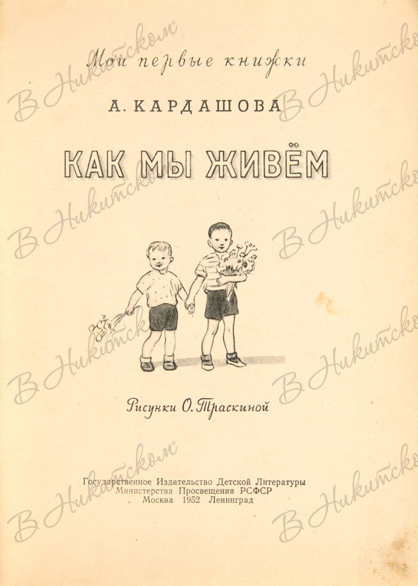 [Серия «Мои первые книжки»]. Кардашова, А. Как мы живём / рис. О. Траскиной. М.; Л.: ДЕТГИЗ, 1952.