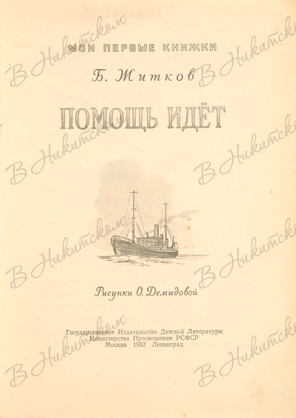 [Серия «Мои первые книжки»]. Житков, Б. Помощь идёт / рис. О. Демидовой. М.; Л.: ДЕТГИЗ, 1952.