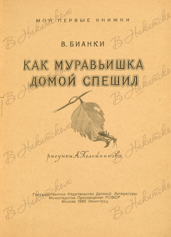 [Серия «Мои первые книжки»]. Бианки, В. Как муравьишка домой спешил / рис. А. Келейникова, 1952.
