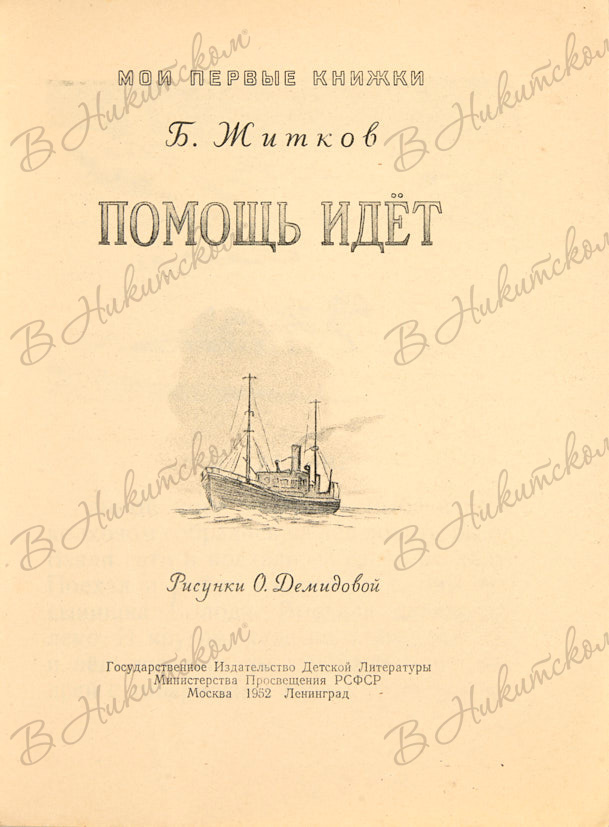 [Серия «Мои первые книжки»]. Житков, Б. Помощь идёт / рис. О. Демидовой. М.; Л.: ДЕТГИЗ, 1952.