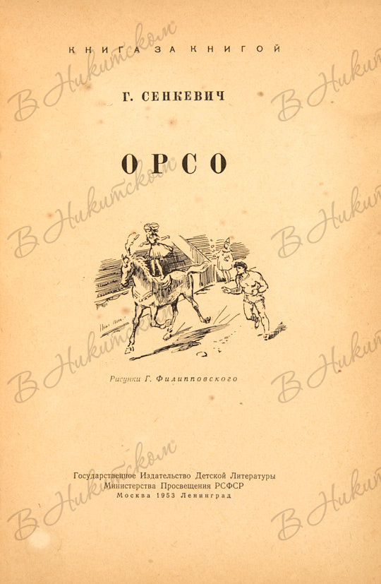 [Серия «Книга за книгой»]. Сенкевич, Г. Орсо / рис. Г. Филипповского. М.; Л.: ДЕТГИЗ, 1953.