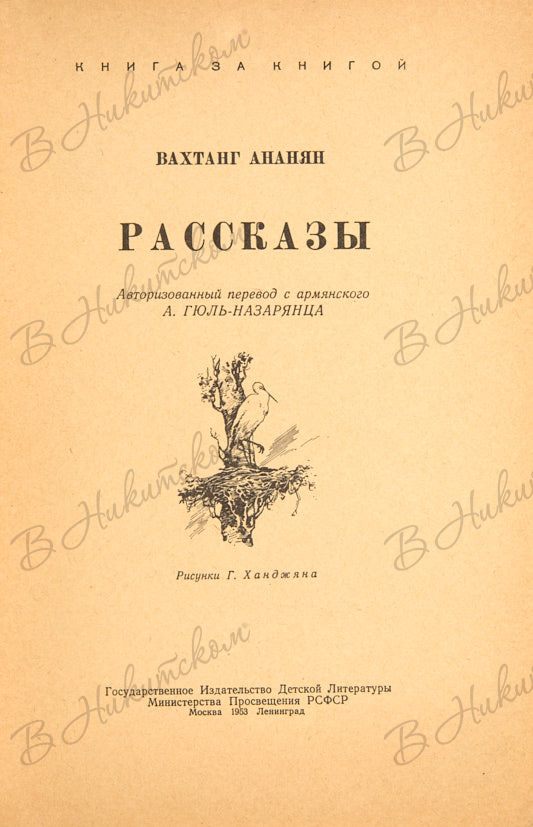 [Серия «Книга за книгой»]. Ананян, В. Рассказы / авторизованный перевод с армянского А. Гюль-Назарянца. М.; Л.: ДЕТГИЗ, 1953.