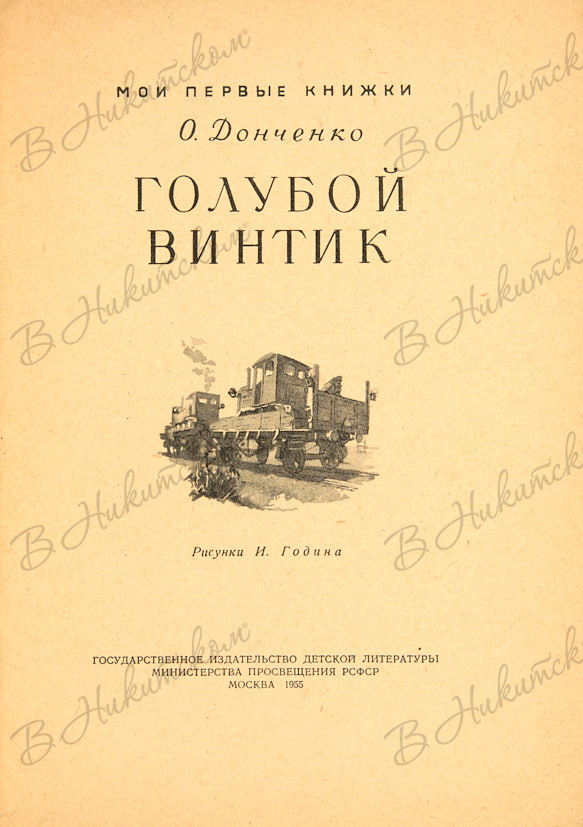[Серия «Мои первые книжки»]. Донченко, О. Голубой винтик / рис. И. Година. М.: ДЕТГИЗ, 1955.