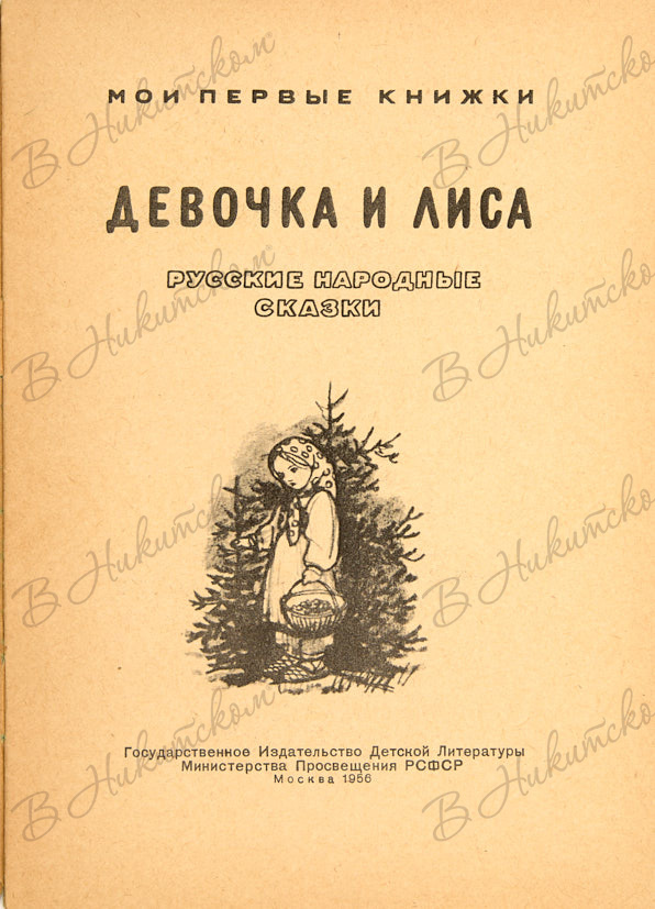 [Серия «Мои первые книжки»]. Девочка и лиса. Русские народные сказки / рис. Г. Никольского и К. Кузнецова. М.: ДЕТГИЗ, 1956.