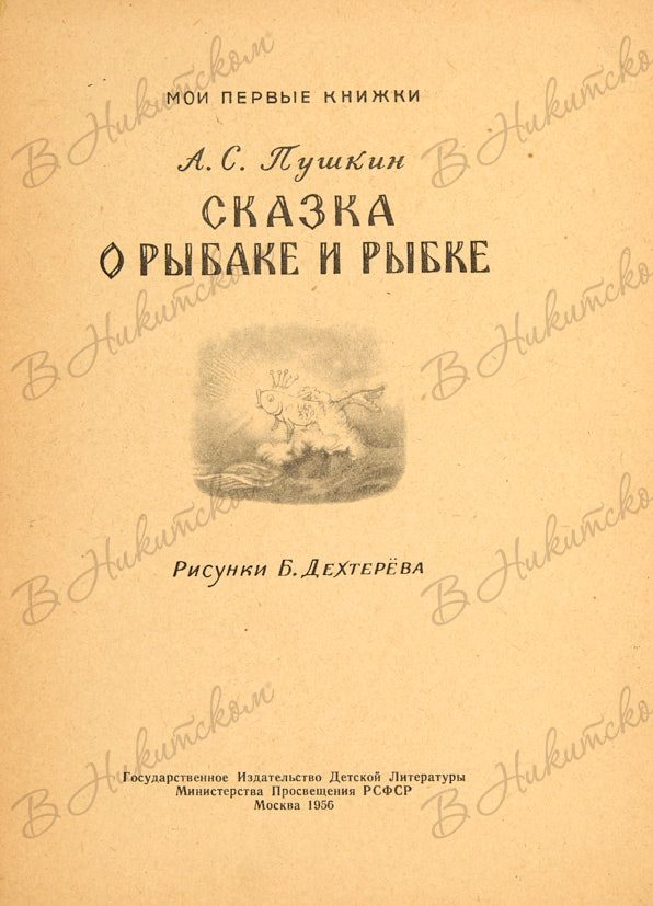 [Серия «Мои первые книжки»]. Пушкин, А.С. Сказка о рыбаке и рыбке / рис. Б. Дехтерёва. М.: ДЕТГИЗ, 1956.