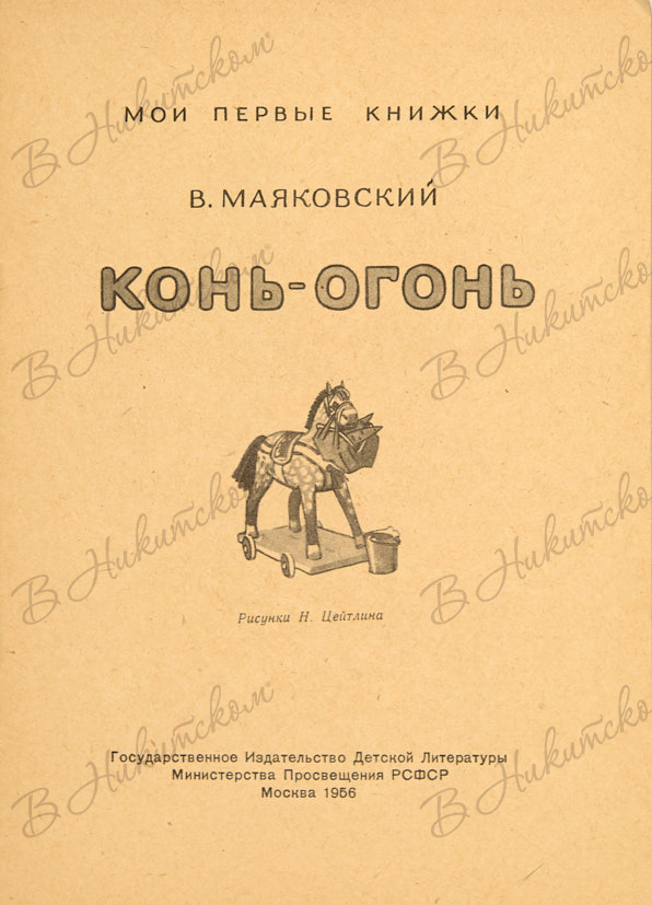 [Серия «Мои первые книжки»]. Маяковский, В. Конь-огонь / рис. Н. Цейтлина. М.: ДЕТГИЗ, 1956.