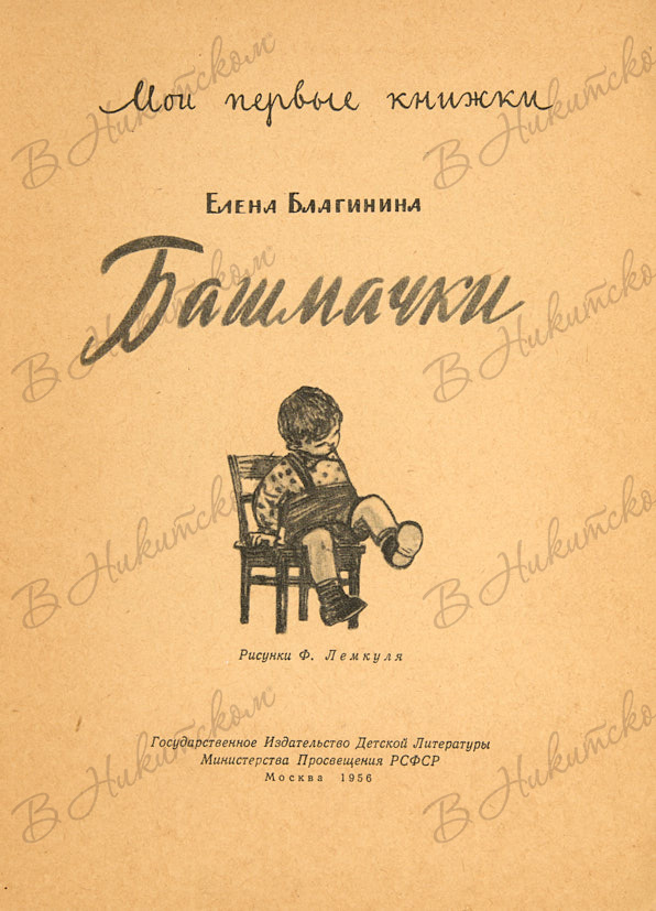 [Серия «Мои первые книжки»]. Благинина, Е. Башмачки / рис. Ф. Лемкуля. М.: ДЕТГИЗ, 1956.