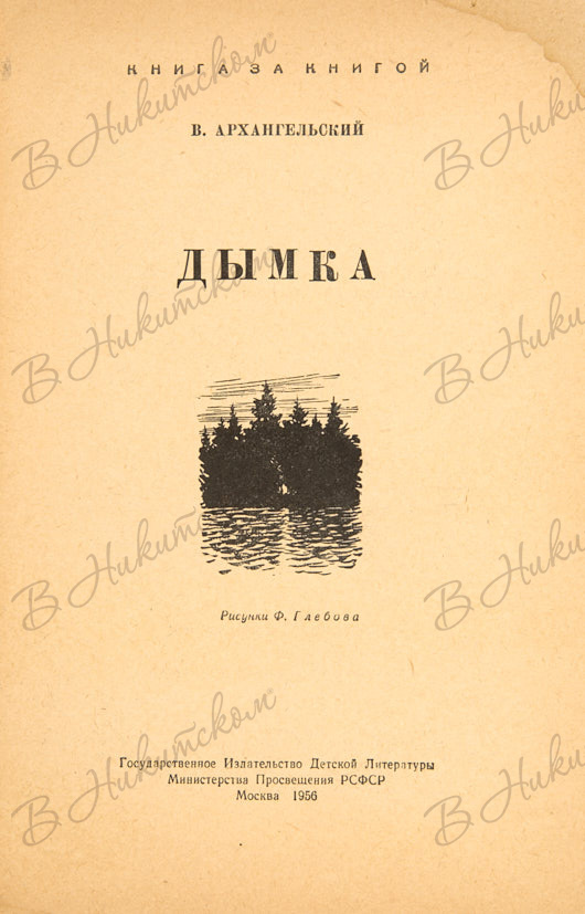 [Серия «Книга за книгой»]. Архангельский, В. Дымка / рис. Ф. Глебова. М.: ДЕТГИЗ, 1956.