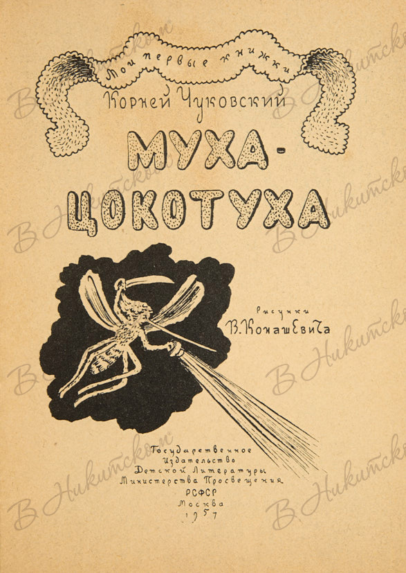 [Серия «Мои первые книжки»]. Чуковский, К. Муха-цокотуха / рис. В. Конашевича. М.: ДЕТГИЗ, 1957.