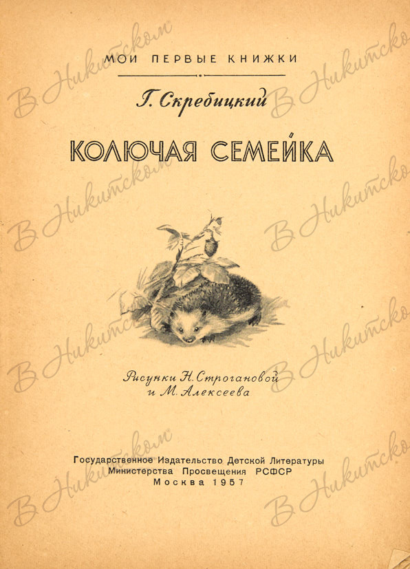 [Серия «Мои первые книжки»]. Скребицкий, Г. Колючая семейка / рис. Н. Строгановой и М. Алексеева. М.: ДЕТГИЗ, 1957.