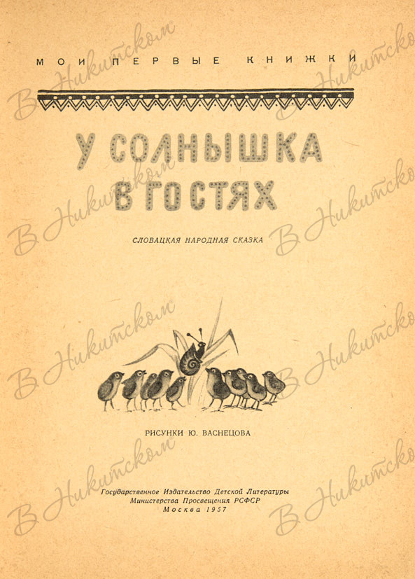 [Серия «Мои первые книжки»]. У солнышка в гостях. Словацкая народная сказка / рис. Ю. Васнецова. М.: ДЕТГИЗ, 1957.