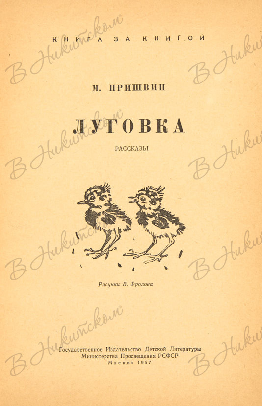 [Серия «Книга за книгой»]. Пришвин, Н. Луговка. Рассказы / рис. В. Фролова. М.: ДЕТГИЗ, 1957.