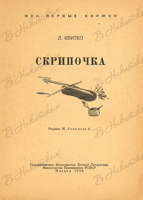[Серия «Мои первые книжки»]. Квитко, Л. Скрипочка / рис. М. Успенской. М.: ДЕТГИЗ, 1958.
