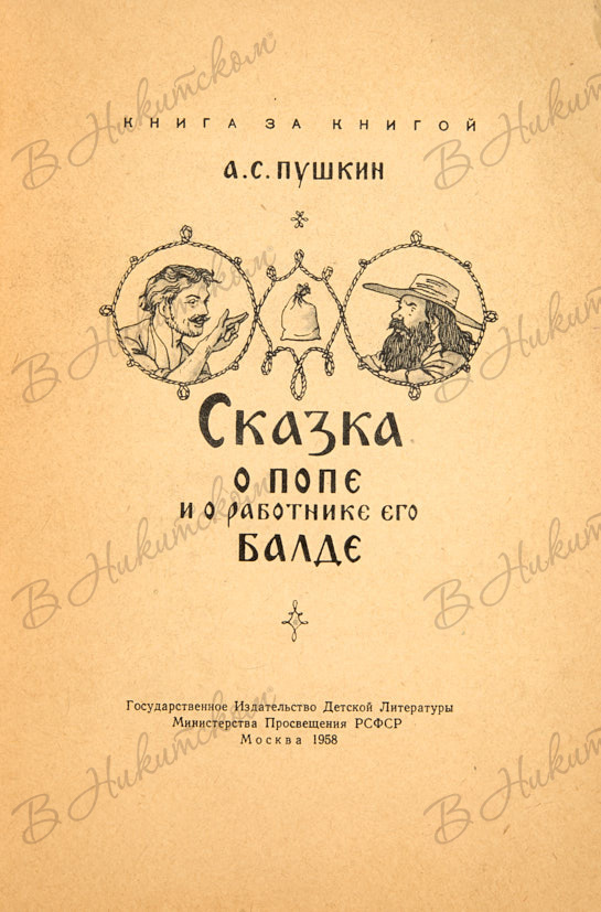 [Серия «Книга за книгой»]. Пушкин, А.С. Сказка о Попе и о работнике его Балде / рис. Б. Дехтерёва. М.: ДЕТГИЗ, 1958.